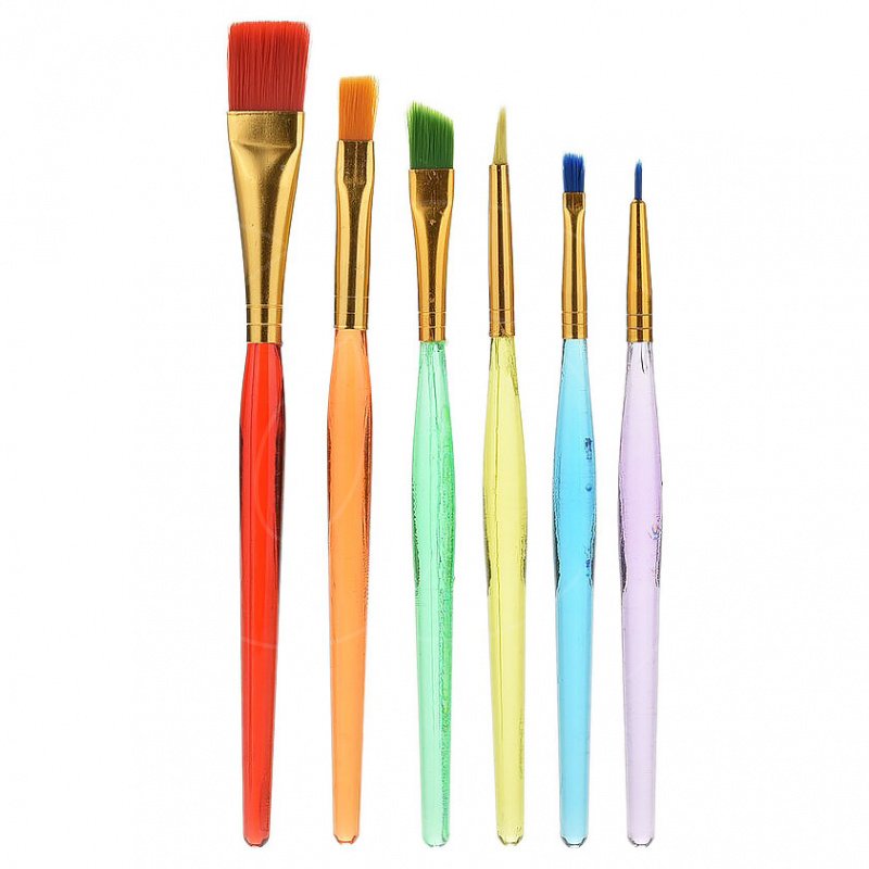 В набор входят шесть кистей разных форм и размеров.